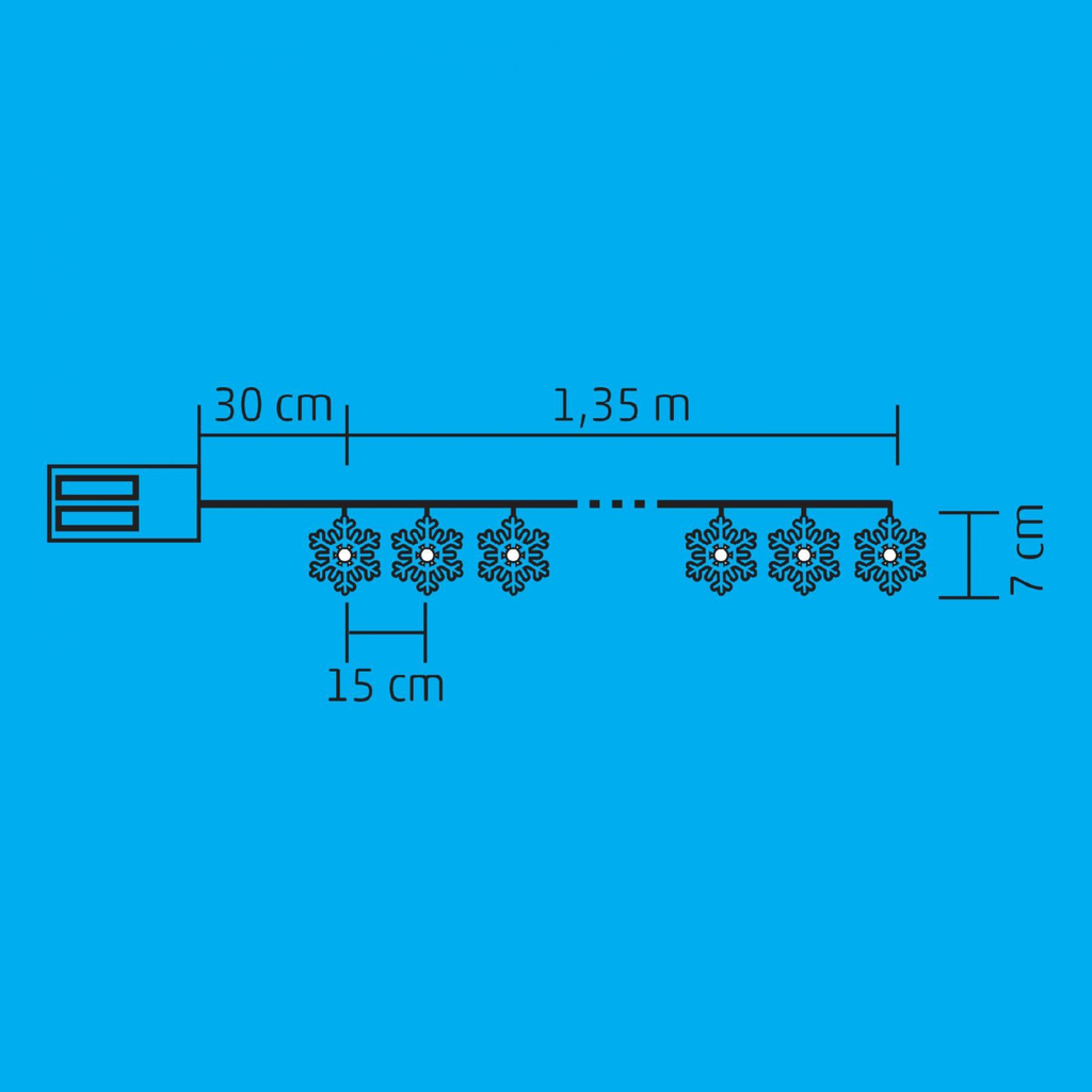 | Egyéb | 10 db, 7 cm magas fém hópehely díszek, ki/be kapcsolható |