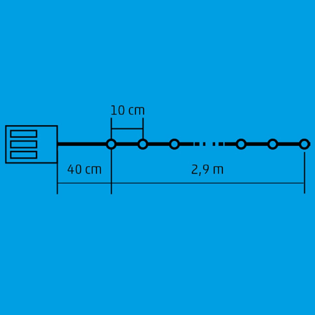Az MLC 30/WW egy melegfehér színű fényfüzér, amely összesen 30 darab LED-et tartalmaz. A termék be/ki kapcsolóval működtethető, továbbá egy diszkrét átlátszó vezetékkel rendelkezik.