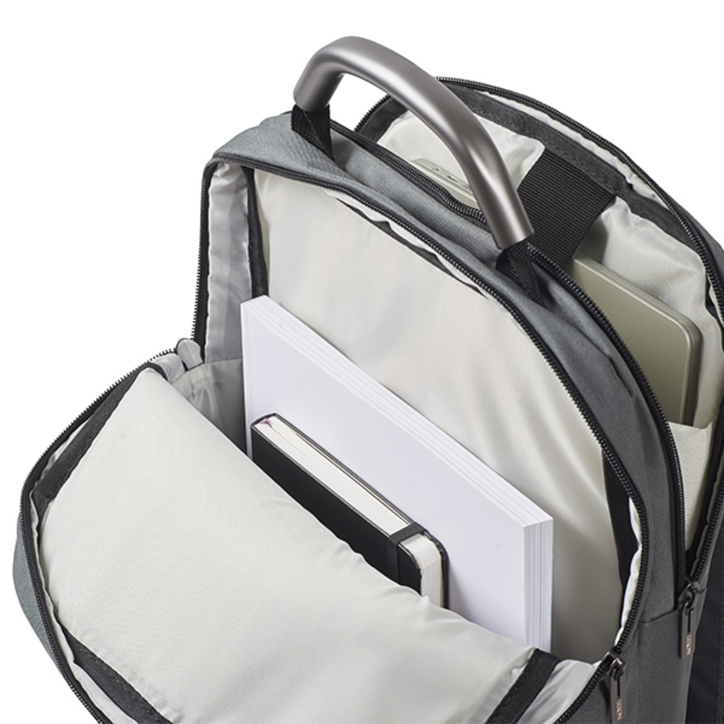 A Premium+ Double hátizsák nemcsak a laptop számára biztosít helyet, hanem sok más alapvető dolgot is tárolhatsz benne. Belül különféle rekeszek találhatóak, amelyek elősegítik a praktikus szervezést. Jegyzetfüzeteket, dokumentumokat, telefont, töltőt és sok más tárgyat is tárolhatsz a hátizsákban.