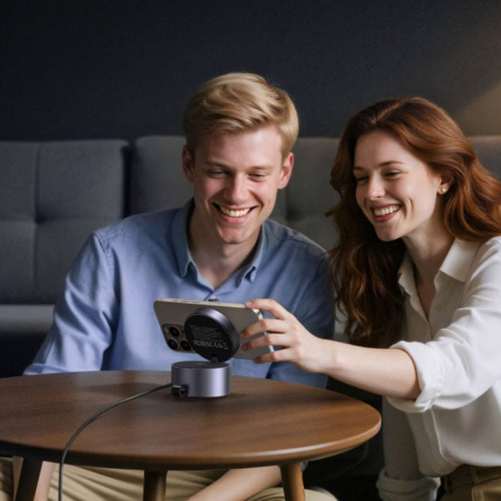 Gyors töltés: A töltő támogatja a legújabb Qi2 szabványt (Qi - elektromágneses indukción alapuló univerzális vezeték nélküli töltési szabvány), akár 15 wattos gyors, vezeték nélküli töltést biztosít a 12-16-os iPhone modellek számára. A mágneses illeszkedésnek köszönhetően a telefon magától beállítja magát a megfelelő pozícióba, így kiküszöbölve a megszakadt töltés kockázatát és felgyorsítva az egész folyamatot.