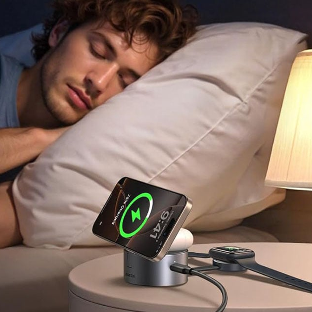 Az UGREEN W712 egy praktikus vezeték nélküli töltő, amellyel egyszerre töltheted az iPhone-t, az Apple Watch-ot és az AirPods-ot. Kompakt kialakításának és összecsukható funkciójának köszönhetően tökéletes lesz az asztalon és útközben is. Kényelmes megoldás mindenkinek, aki az Apple ökoszisztémát használja.