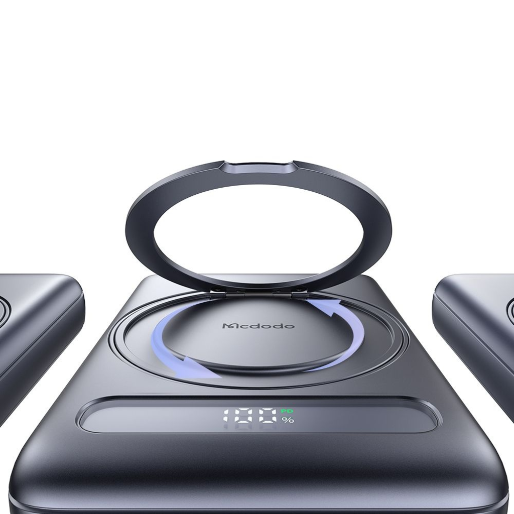 Magnetic power bank meta series Mcdodo (MC-8371) – beépített 360°-os gyűrűs állvány, 10000mah, 20w, digitális kijelző – sötétszürke