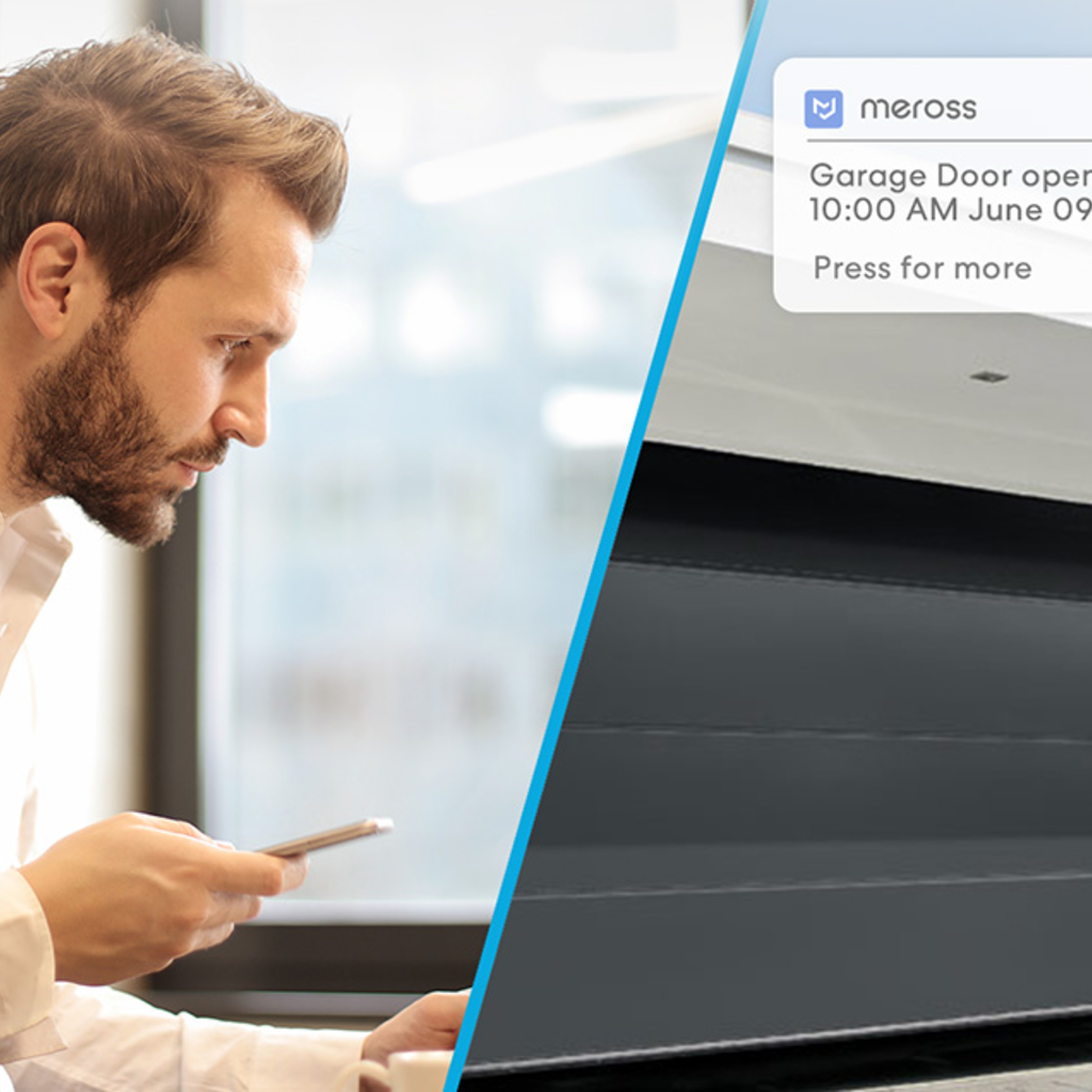 Meross alkalmazás - élvezze a távvezérlést. Frissítse fel hagyományos garázskapu működtető rendszerét ezzel a praktikus kapcsolóval. A Meross alkalmazással párosítva rengeteg hasznos képességet biztosít. Távolról nyithatja, zárhatja és felügyelheti garázsát, és értesítéseket kaphat, ha a garázskapu kinyílt vagy bezáródott. Előfordul, hogy elfelejti bezárni a garázst? Ne aggódjon! Ha túl sokáig marad nyitva vagy lefekvéskor, a Meross értesíti Önt.
