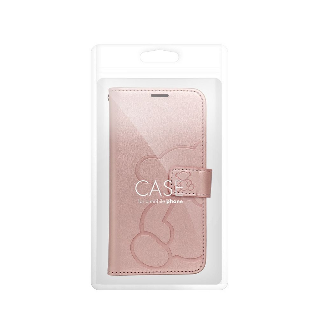MEZZO fliptok iPhone 16e (SE 4 2025) mackó rózsaarany tok