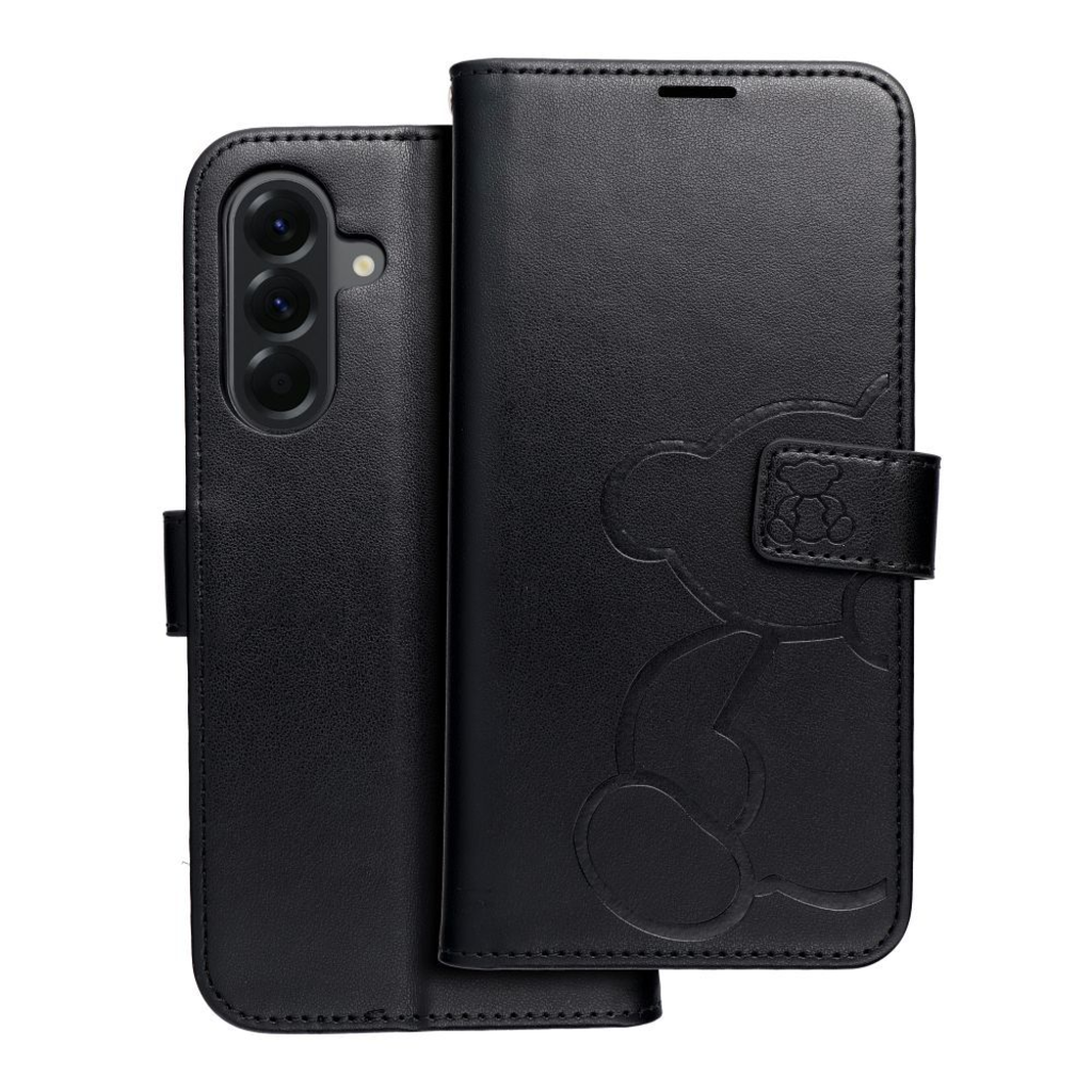 Samsung Galaxy A56 5G fekete MEZZO fliptok teddy bear tok