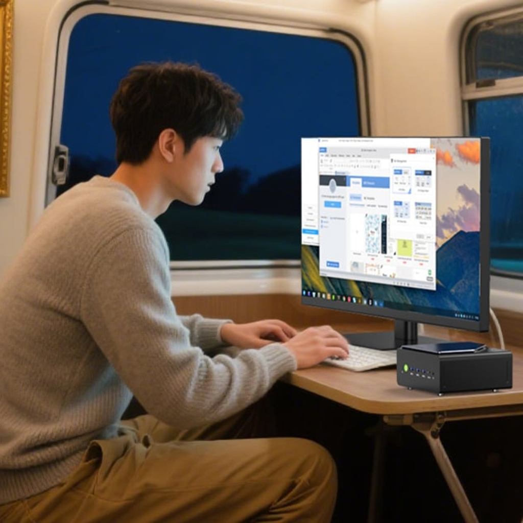 A készülék akár négy egyidejűleg akár 8K felbontású monitort is támogat, kivételes vizuális élményt és nagy munkaterületet kínálva. Olyan portokkal rendelkezik, mint az USB 4.0, az USB-C, a DisplayPort 1.4 és a HDMI 2.1, így számos eszköz csatlakoztatható hozzá - a monitoroktól és a grafikus táblagépektől kezdve a tévékészülékekig és a projektorokig. Ideális olyan kreatívok, elemzők és szakemberek számára, akiknek egy nagy teljesítményű mini PC-re van szükségük a több képernyős munkához és a kiváló minőségű képfeldolgozáshoz.