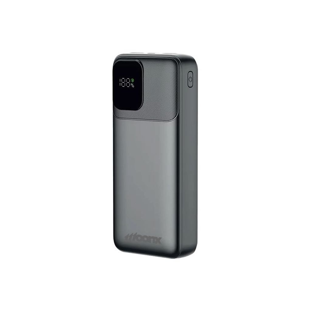 A MOONX MP02 power bank nem csupán erős, hanem rendkívül praktikus és felhasználóbarát is. Az elegáns fekete burkolat, kiegészítve a modern, textúrált felülettel, kiválóan illeszkedik a mai tech eszközök esztétikájához. Az integrált digitális LED kijelző folyamatosan tájékoztatja Önt az akkumulátor pontos töltöttségi szintjéről százalékban, így soha nem éri meglepetés. A kényelmesen elhelyezett bekapcsológombbal egyszerűen kezelheti a power bankot.