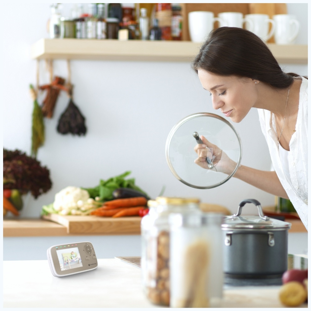 A stílusos fehér-arany kivitel elegánsan illeszkedik a belső térhez, ötvözve a modern technológiát az esztétikával. A Motorola VM483 egy praktikus, kompakt és megbízható megoldás, amely megkönnyíti a mindennapi gyermekgondozást.