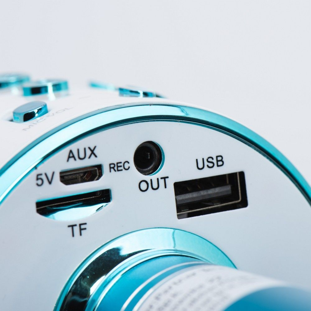 A multimedia mikrofon karaoke-hoz. Bluetooth-on keresztül csatlakoztatható a telefonhoz. Támogatja a TF kártya és USB pendrive lejátszást. A Bluetooth kapcsolat lehetővé teszi, hogy vezeték nélkül csatlakoztassa a mikrofont bármilyen, ezzel a funkcióval rendelkező telefonhoz. Zenelejátszás a TF kártyáról és USB pendriveról. Beépített vokál- és kísérőkapcsoló egygombos varázshang funkcióval, több hangváltási móddal; kiváló minőségű, tiszta hangot biztosít, hasonlóan a KTV hatáshoz, amely olyan érzést nyújt, mintha egy karaoke színpadon lennél. Használható mikrofonként, Bluetooth hangszóróként, lejátszóként, hangrögzítőként. Kompatibilis különböző ének alkalmazásokkal. A magas érzékenységű mikrofon minden irányból felveszi a hangot, a kompakt méret biztosítja a kényelmes fogást és könnyű hordozást. Specifikáció: Jel-zaj viszony: 90db Frekvencia válasz: 80Hz~12kHz Maximális SPL: 130 dB Érzékenység: -47db±2db Csatlakozás: Bluetooth, USB, TF kártya Bluetooth távolság: legfeljebb 10 m Funkciók: mikrofon, Bluetooth hangszóró, lejátszó, hangrögzítő, hangváltó. Kompatibilis különböző ének alkalmazásokkal Akkumulátor: 18650 Anyag: fém, műanyag, alumínium ötvözet, ABS