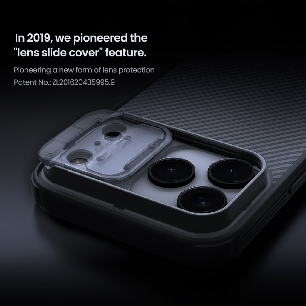 A Nillkin CamShield PRO tok legkiemelkedőbb tulajdonsága a szabadalmaztatott, csúsztatható kamera lencsefedél. Ez a zseniális megoldás maximális védelmet nyújt az iPhone 17 Pro Max rendkívül érzékeny és értékes kamerarendszerének, megóvva azt a karcolásoktól, portól és ütődésektől. Emellett biztosítja az Ön privát szféráját is, amikor nem használja a kamerát. A Nillkin úttörő szerepet játszott ebben a technológiában, amelyet már 2019-ben bevezettek (ZL201620435995.9 számú szabadalommal), ezzel biztosítva a tiszta látványt és a lencsék hosszú távú épségét.