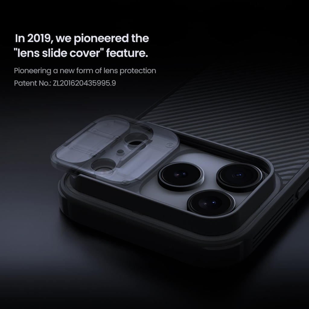 A Nillkin CamShield Pro tok egyik legkiemelkedőbb funkciója a precízen megtervezett, csúsztatható lencsevédő. Ez az innovatív fedél teljes mértékben megóvja iPhone 17 Pro készüléke értékes kameráit a karcolásoktól, portól és a szennyeződésektől. Ezenkívül, használaton kívül diszkréten védi magánéletét is. Fontos megjegyezni, hogy a Nillkin már 2019-ben úttörő szerepet játszott a csúsztatható lencsevédő funkció bevezetésében, melyre szabadalmi oltalommal is rendelkezik (Patent No: ZL201620435995.9), ezzel garantálva a megbízható és bevált technológiát.