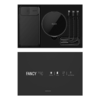 - Vezeték nélküli gyorstöltő: Tapasztalja meg a kényelmes és gyors töltést a szettben található vezeték nélküli gyorstöltővel. A vékony, kerek kialakítású töltő elegáns fekete felületén szintén megjelenik a "DISCOVER INNOVATION" felirat, amelyet egy fényes, krómhatású gyűrű keretez. Kompatibilis a Qi szabványt támogató eszközökkel, és a gyors töltési funkciónak köszönhetően rövid idő alatt feltöltheti készülékét.