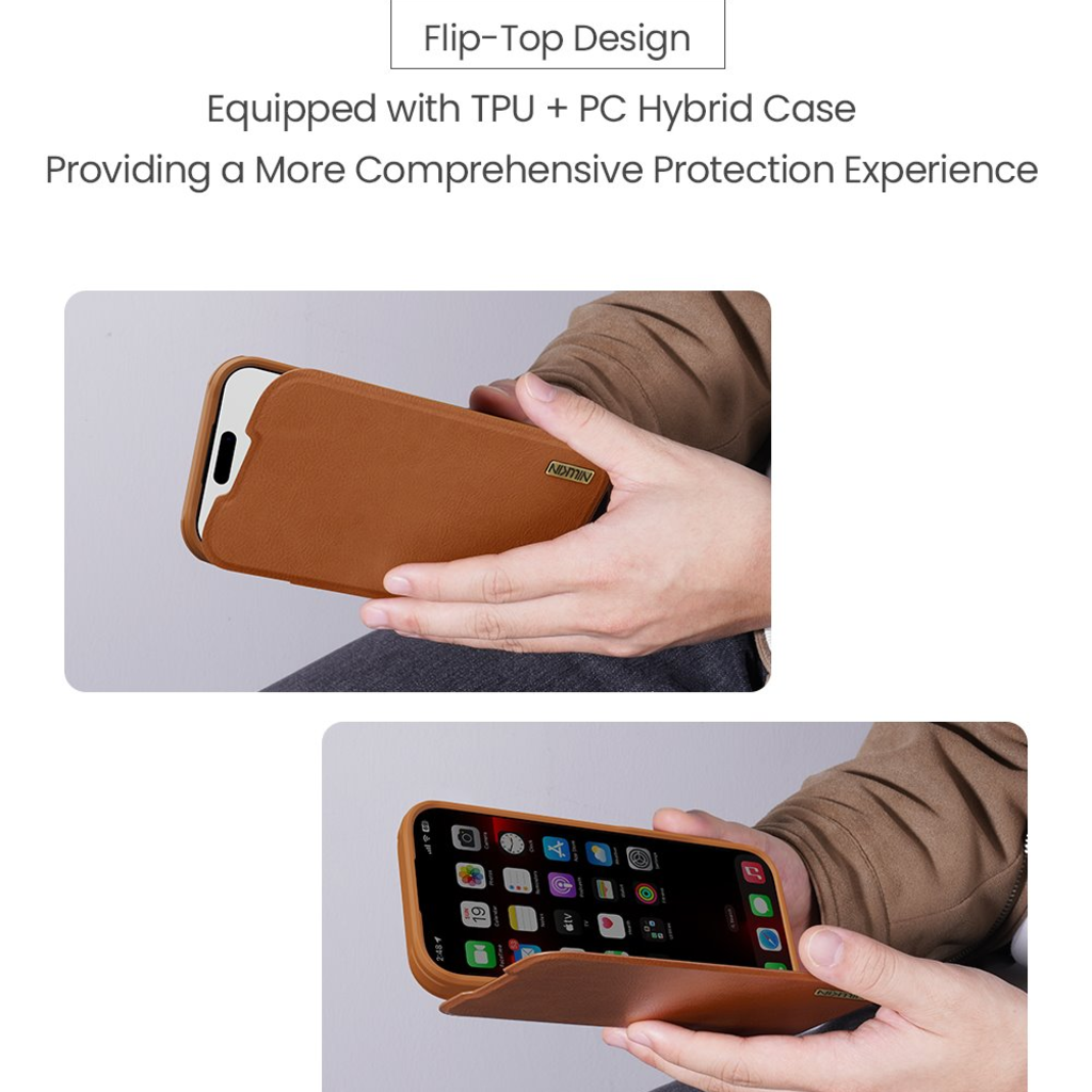 A Nillkin QIN Book PRO fliptok magas minőségű PU bőrből készült, oldalra nyílik, mint egy könyv, és a klasszikus QIN Bookhoz képest egy csúsztatható kamera lencsefedővel is rendelkezik.