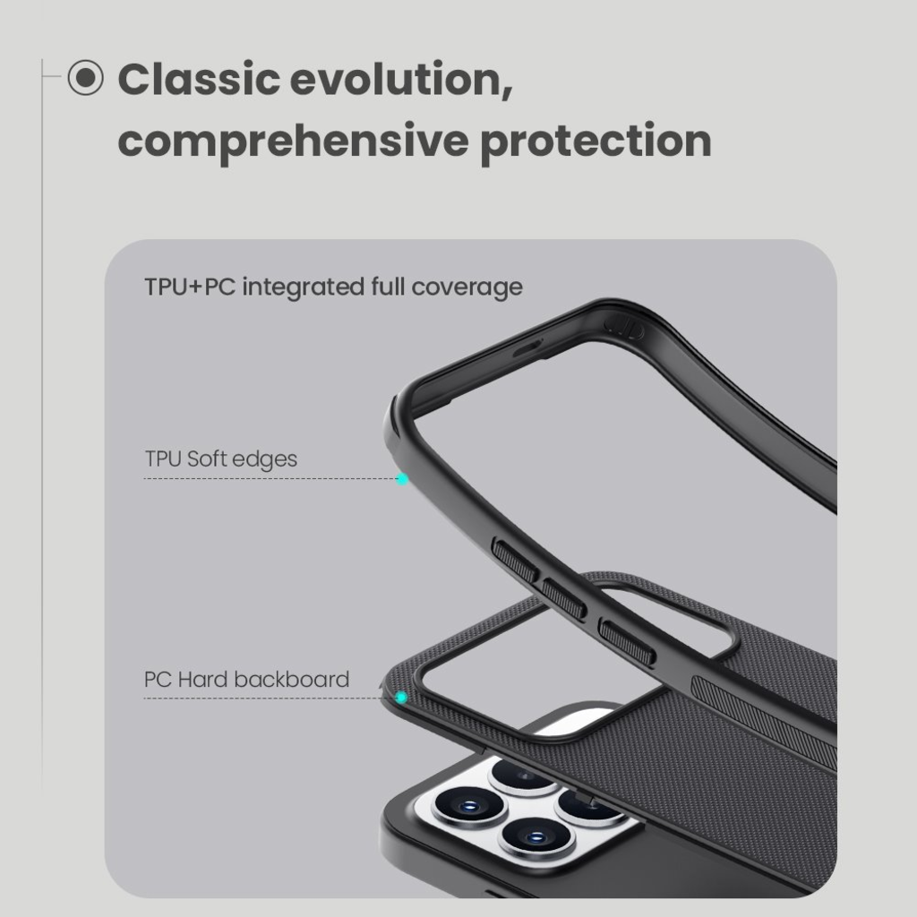 Kemény és tartós műanyagból áll a hátoldalon, míg a szélein TPU puha műanyag található.