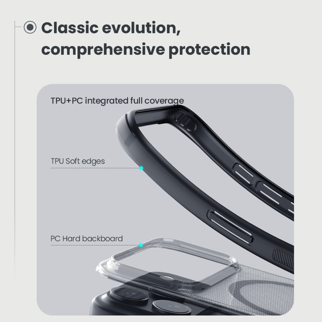 Kemény és tartós műanyagból készült a hátoldalon, valamint TPU puha műanyagból az oldalakon.