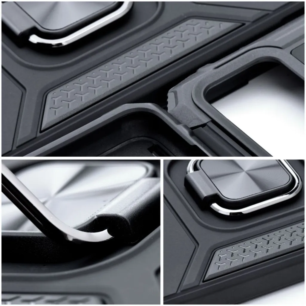 A Nitro hibrid tok páncélozott dizájnnal garantálja a teljes telefonvédelmet különböző helyzetekben. A beépített gyűrű, amelynek mágneses felülete jól működik mágneses autós tartókkal, lehetővé teszi, hogy biztonságosabban tartsa a készüléket, és állványként is szolgál a filmnézéshez. A Nitro tok sötét esztétikában megőrzött páncélozott megjelenése biztosan tetszeni fog azoknak, akik kedvelik a katonai dizájnt. A tok hátuljába beépített mágneses gyűrű megkönnyíti a telefon tartását és megakadályozza a kicsúszást a kezéből, valamint állványként használható filmnézés közben. Ez a fogás jól működik a mágneses autós tartókkal. A Nitro tok segít vigyázni okostelefonjának biztonságára és megakadályozza a sérüléseket, ha magasságból esik le, vagy a gyakori használat miatt kialakuló karcolások ellen. Az ütésálló TPU anyag és a tartós PC olyan kombinációt hoz létre, amely nemcsak magas szintű védelmet, hanem hosszú távú tartósságot is garantál. A tok párnázott belső része megvédi az okostelefont a karcolásoktól és olyan módon osztja el az ütési erőt, hogy a telefon sértetlen maradjon. A szilárd élek kivágásokkal a portok számára megerősített peremekkel rendelkeznek, így biztos lehet benne, hogy a készülék minden oldalról védett marad. Anyag: TPU + PC