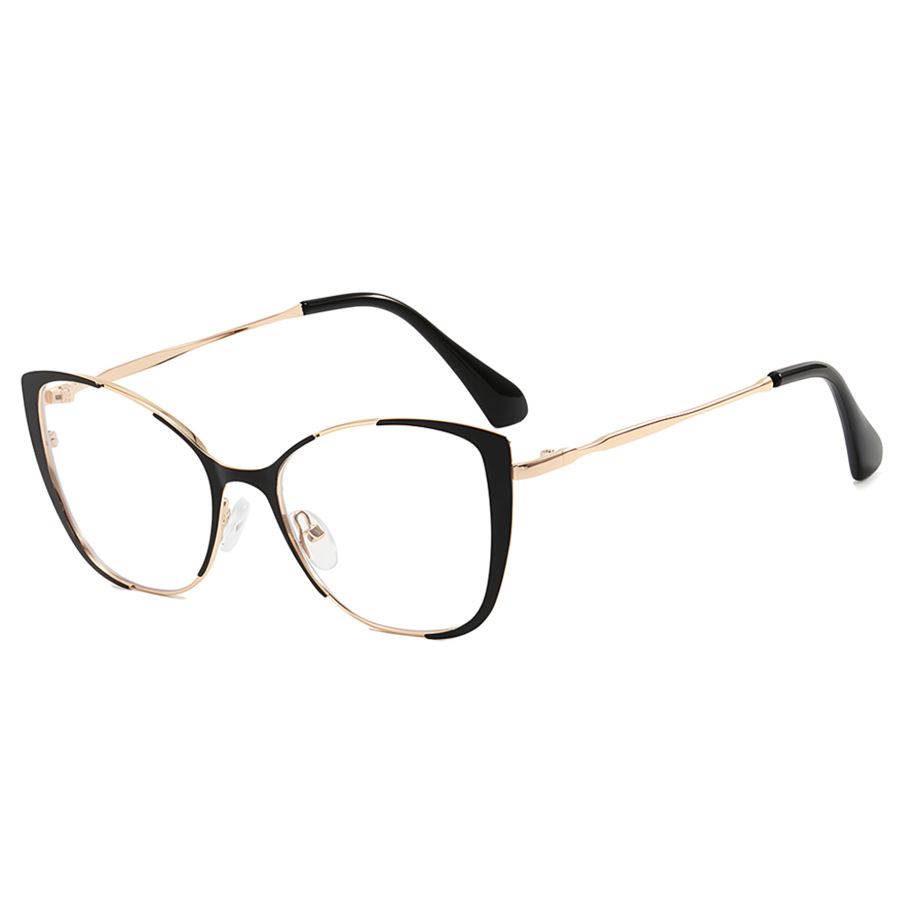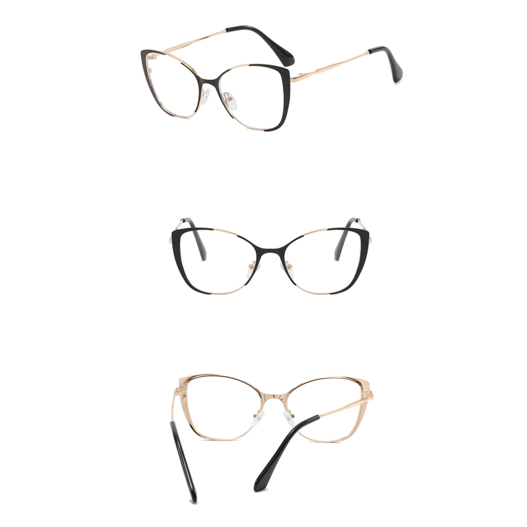 - Két tónusú, elegáns keret: A fekete felső rész és az arany fém alsó keret, valamint a karcsú arany szárak harmonikus kontrasztot alkotnak, luxus érzetet keltve.