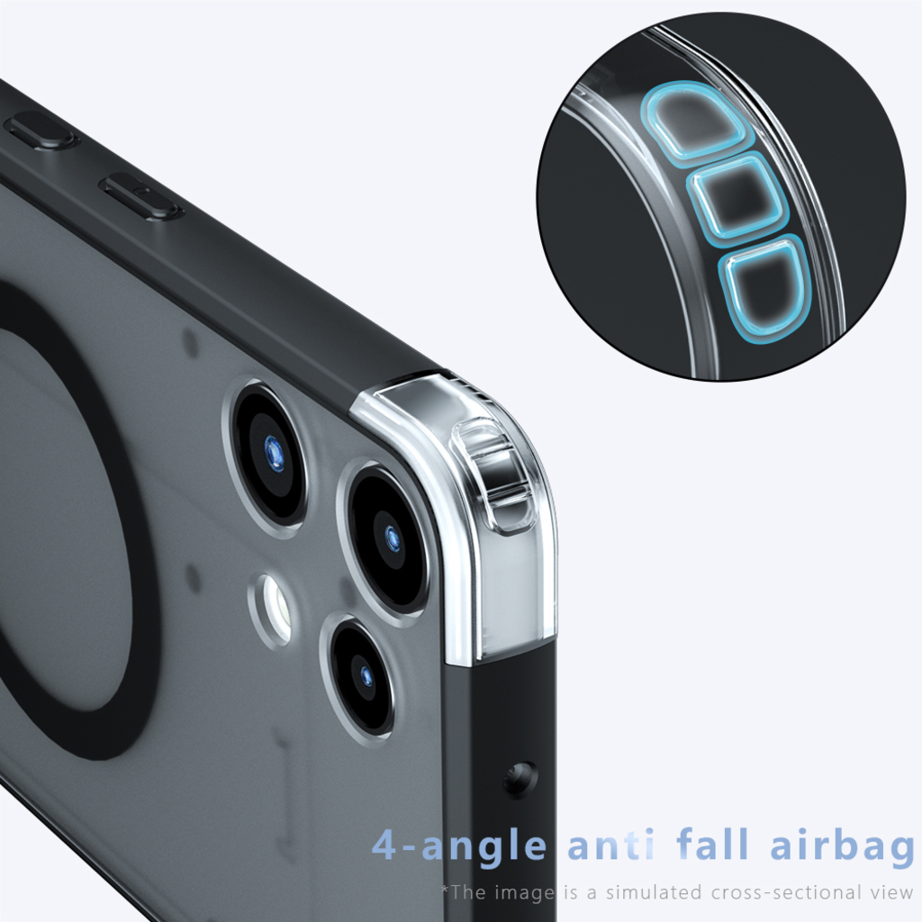 - MagSafe kompatibilitás: A tok beépített MagSafe gyűrűvel rendelkezik, így tökéletesen illeszkedik a MagSafe töltőkhöz és egyéb mágneses kiegészítőkhöz, biztosítva a gyors és kényelmes használatot.