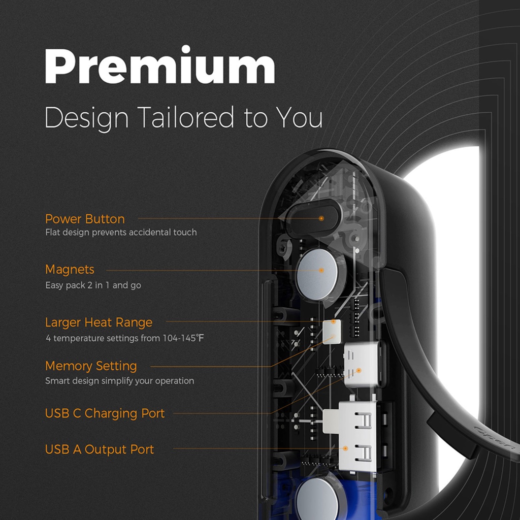 Ocoopa - Kézmelegítő UT2s (UT2S-BK) - USB-C, Power Bankkal, Elektromos, Mágneses Dizájn, MagTwins, 2x 5000mAh - Fekete
