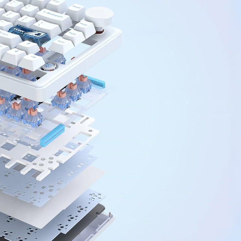 Az alkalmazott, 5 rétegű hangszigetelő rendszerrel ellátott tömítőarchitektúra rendkívül csendes billentyűműködést biztosít. A lineáris kapcsolók üzem közben cserélhetők, a finomra hangolt stabilizátorok pedig gondoskodnak a nyomás egyenletességéről. A kétszeresen fröccsöntött PBT-ből készült átlátszó billentyűsapkáknak és a hangos "Mahjong" profilnak köszönhetően a gépelés ezen a billentyűzeten élvezetes.