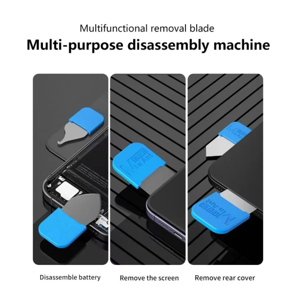 Opening Pry Tool MaAnt MY-118 A MaAnt MY-118 ideális eszköz technikusok számára, akik hatékony és biztonságos szerszámra van szükségük telefonok és tabletek szétszereléséhez. Okos kialakításával, sima éleivel és különböző szögekhez illeszkedő pengéivel ez a szerszám megkönnyíti és felgyorsítja tokok, képernyők vagy üveg hátlapok nyitását.