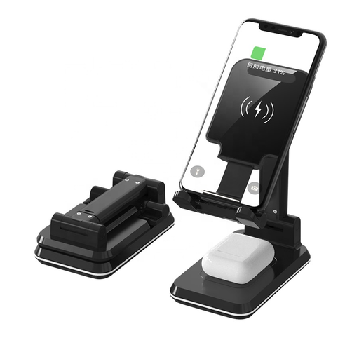 Összecsukható 2in1 Vezeték nélküli Qi 10W gyorstöltő állvány, töltőállomás fekete