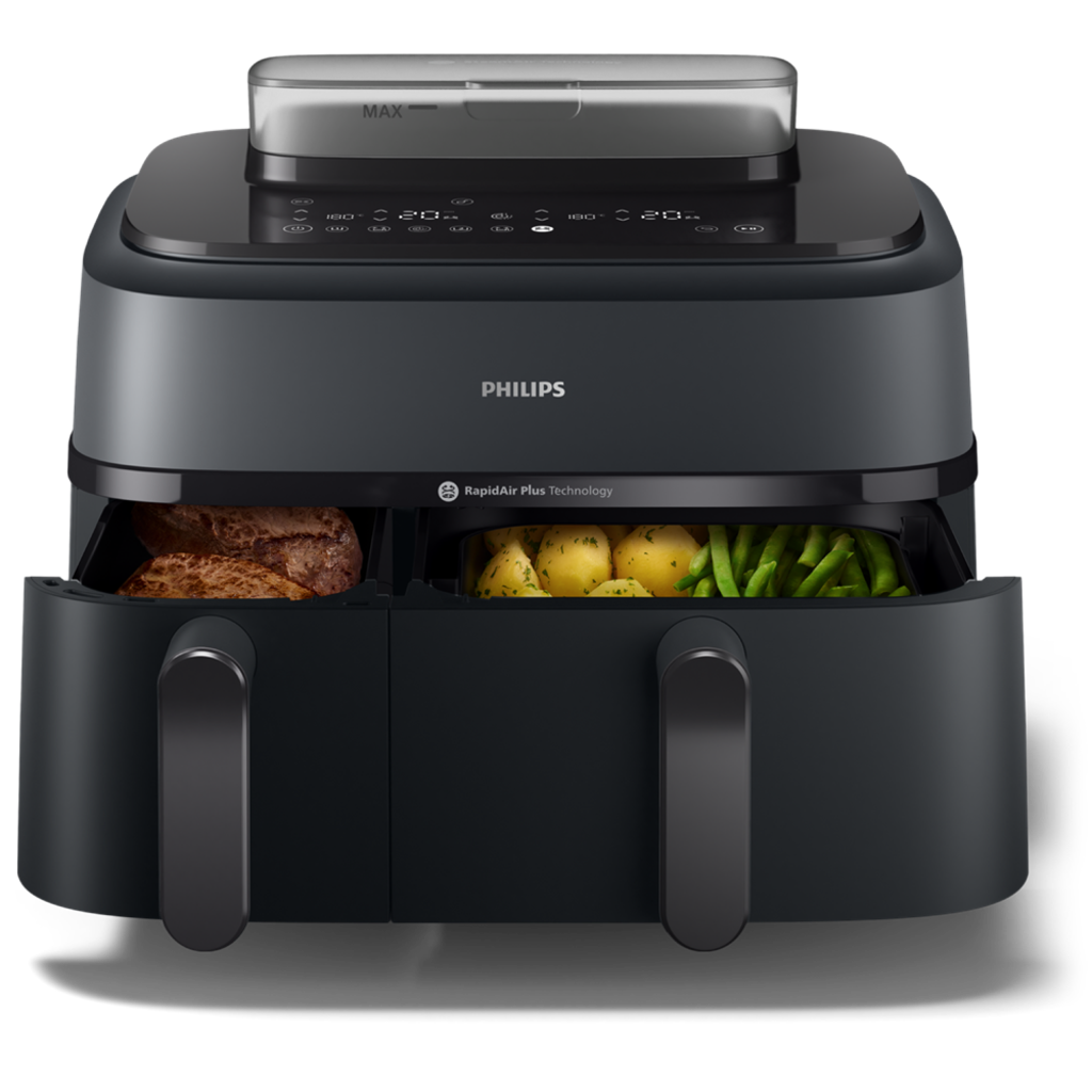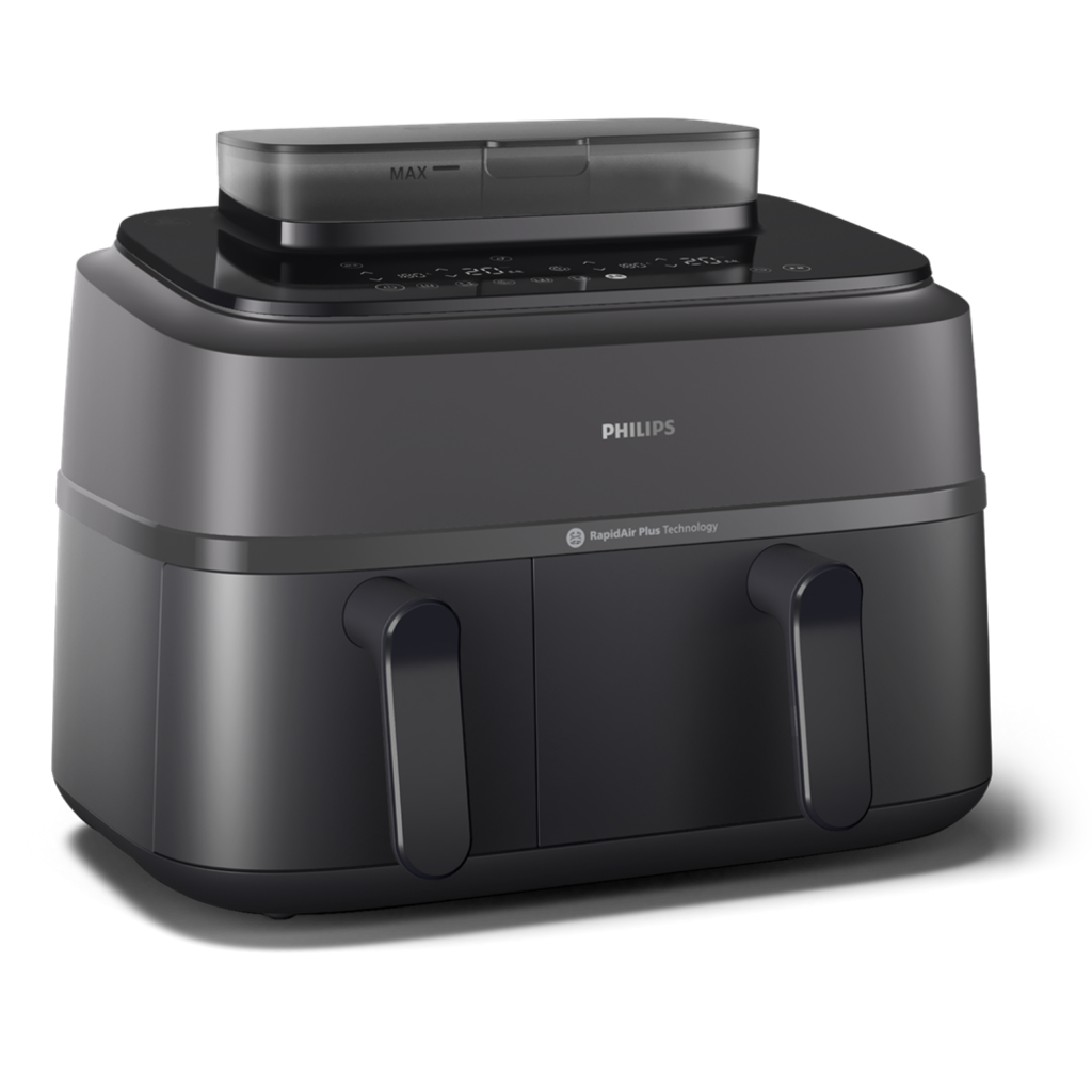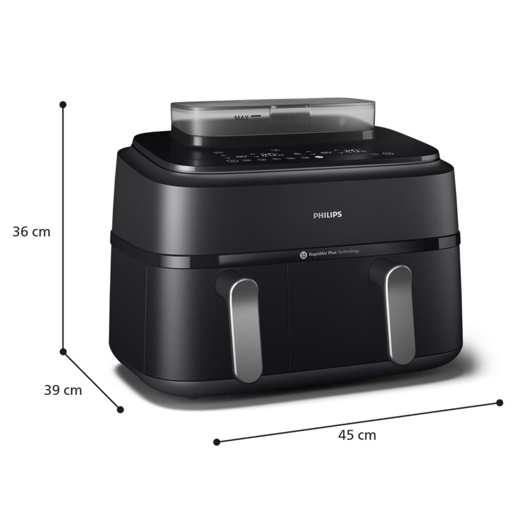 - Egészségesebb ételek: Élvezze a ropogós, ízletes ételeket akár 90%-kal kevesebb zsírral, a Philips RapidAir Plus technológiájának köszönhetően.