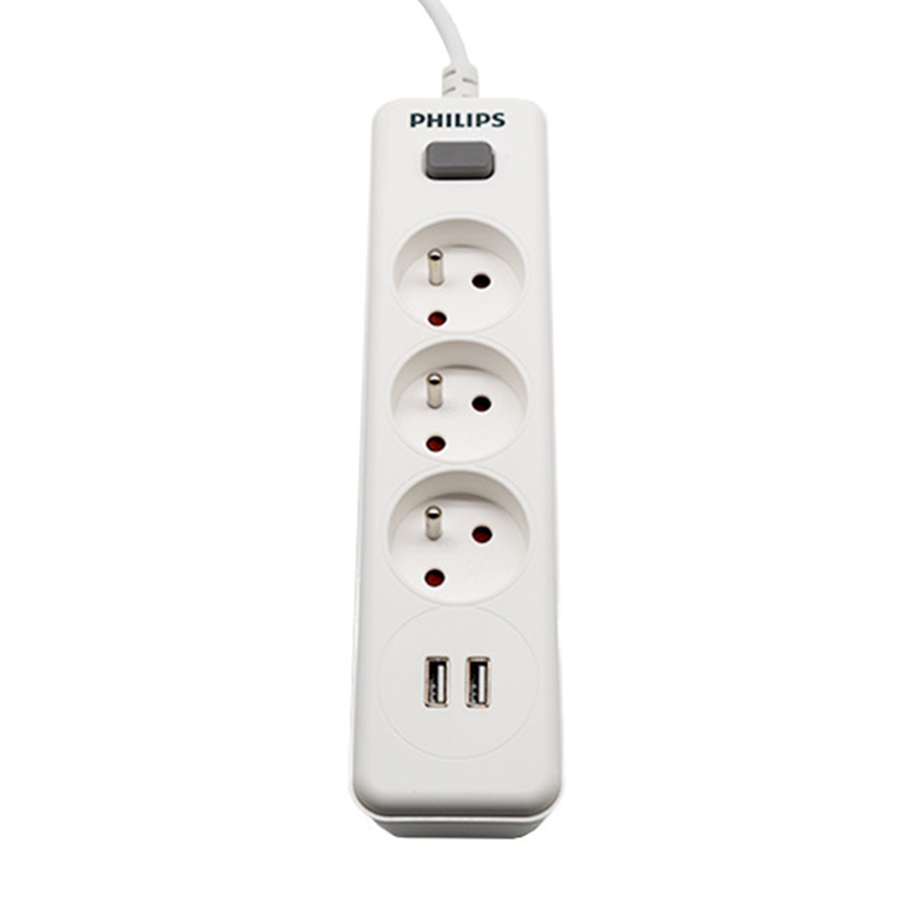 PHILIPS hálózati elosztó 3 aljzat + 2 USB 2m 10A fehér