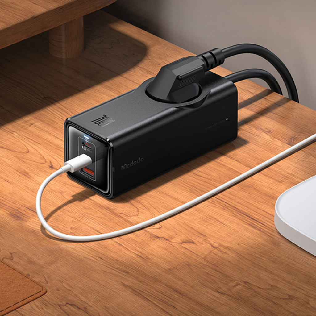 Tartsa rendben az asztalát, és élvezze a kényelmes töltést vagy eszközeinek áramellátását. A McDodo CH-4620 hálózati elosztó 3 porttal (2x USB-C, 1x USB-A) és egy AC aljzattal van felszerelve, lehetővé téve, hogy egyszerre akár 4 eszközt is csatlakoztathasson. A termék emellett biztosítja a felhasználói biztonságot és kiemelkedik könnyű, kompakt kialakításával – nem fog túl sok értékes helyet elfoglalni. Továbbá a 70W-os teljesítménykimenetének köszönhetően sikeresen használhatja laptopok töltésére is.