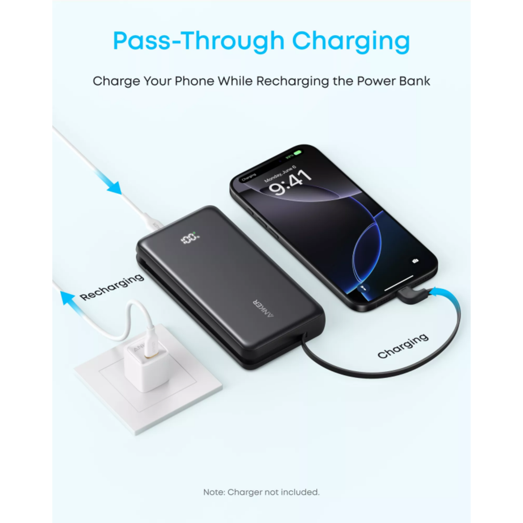 Ez az intelligens funkció lehetővé teszi, hogy egyszerre töltse fel telefonját, miközben maga a power bank is töltődik. Soha többé nem kell választania, melyik eszköz kapja meg először az energiát. Megjegyzés: a fali töltő adapter nem tartozék.