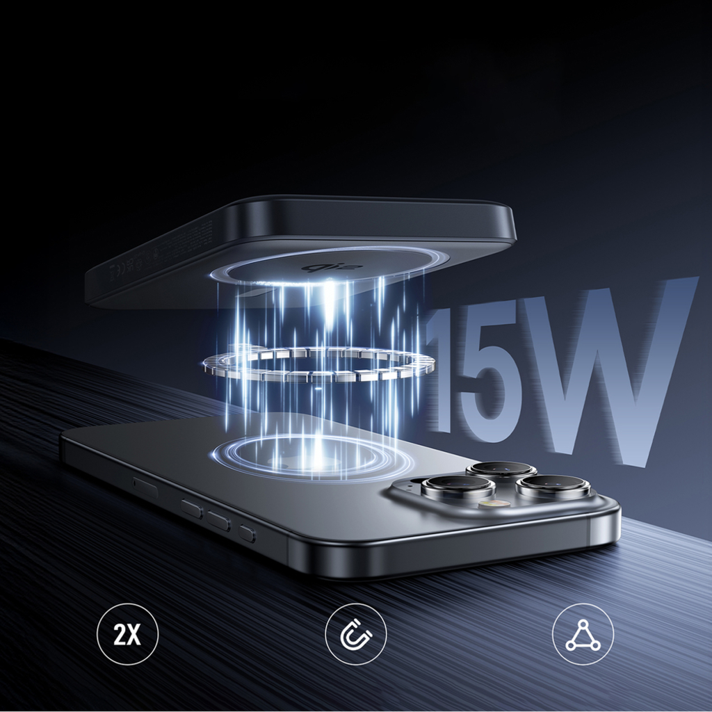 - Qi2 tanúsítvány és 15W gyors töltés: stabil, gyors és biztonságos töltés a legújabb iPhone-okhoz.