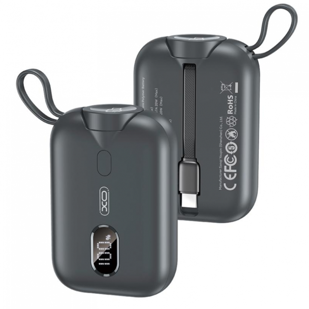 Powerbank XO DESIGN PR260, 10000mAh, 20W, PD + QI, Fekete
