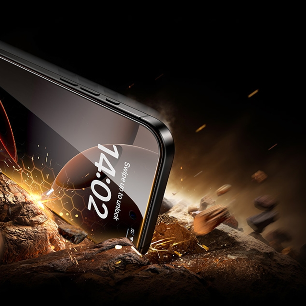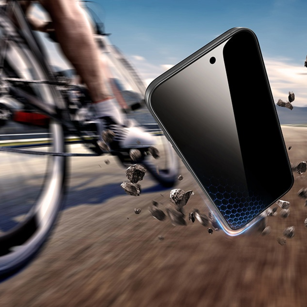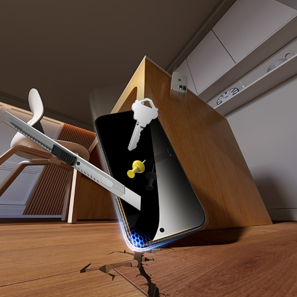 A fólia több mint 5000 ejtési teszten ment át, így hatékonyan védi a képernyőt a repedések és ütések ellen. Emellett a 9H+ keménységű edzett üveg megvédi a kijelzőt a kulcsokkal, érmékkel és egyéb éles tárgyakkal való érintkezés okozta karcolásoktól. Ennek eredményeként a képernyő hosszú ideig sima és esztétikus marad.