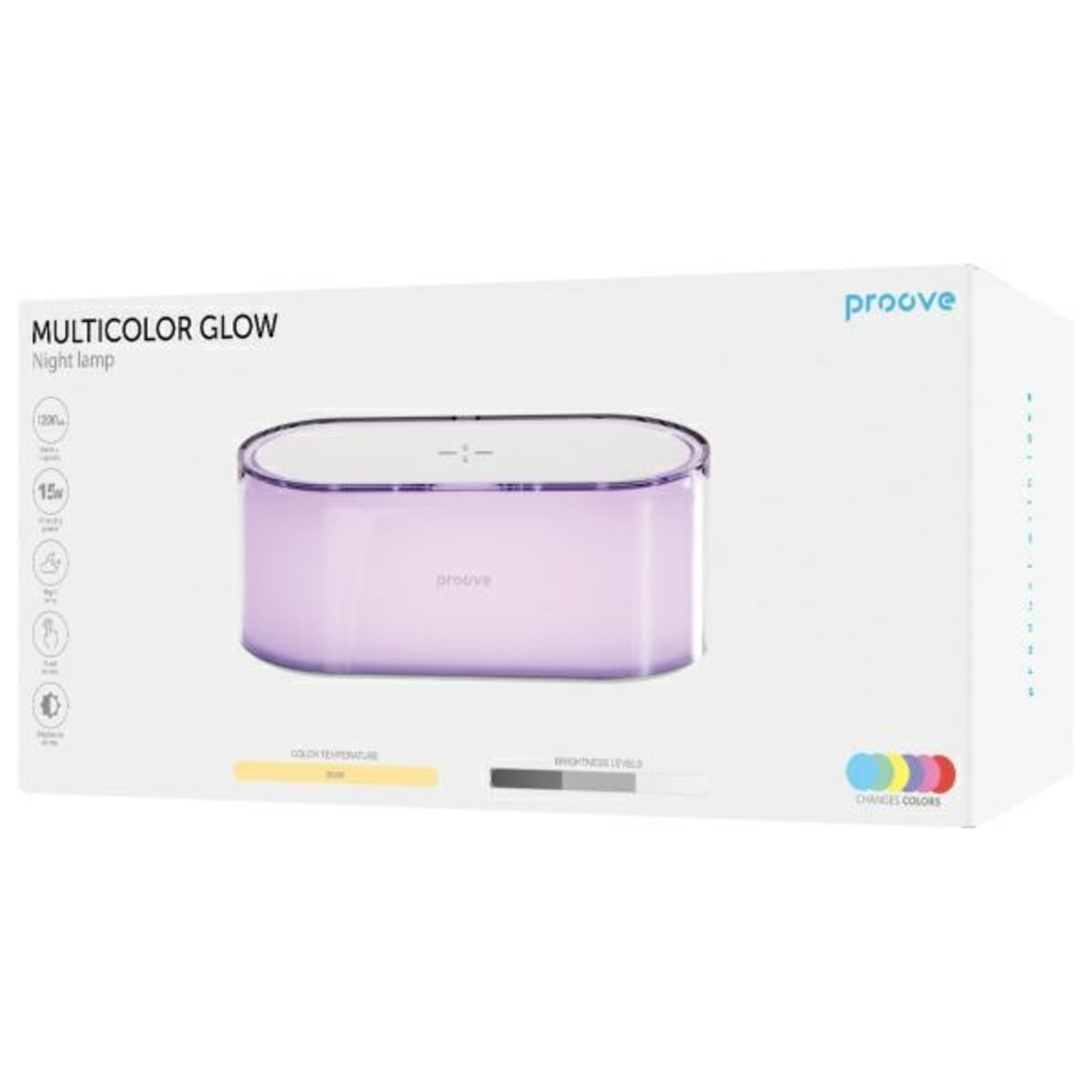 Felhasználói kényelem. A Proove Többszínű Glow az Ön kényelmét szem előtt tartva készült. A tágas 1200 mAh akkumulátor akár 18 órás működést biztosít halk világítással, a különböző világítási módok - a meleg fehér fénytől a RGB többszínű megvilágításig - segítenek megteremteni a tökéletes feltételeket a pihenéshez vagy az esti kikapcsolódáshoz. Ez egy stílusos és funkcionális megoldás, amely átalakítja az Ön terét.