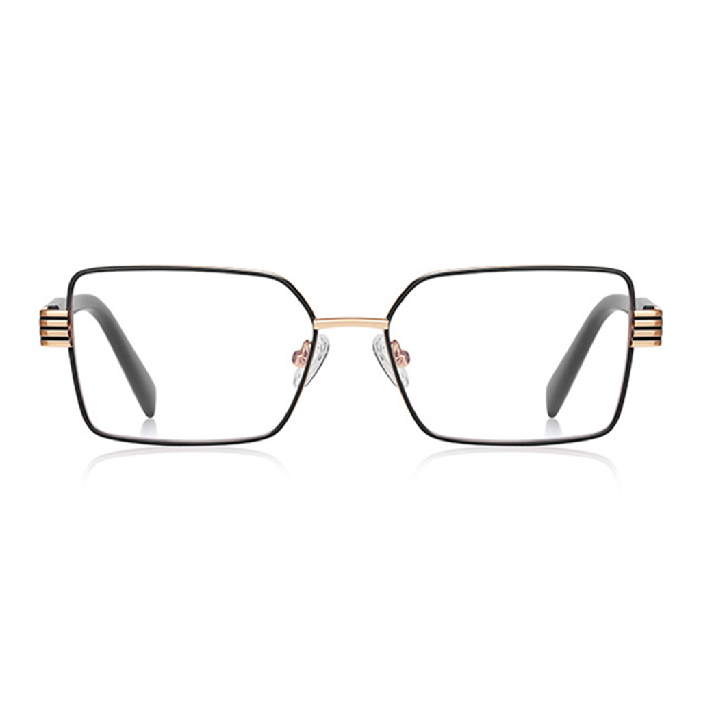 - Elegáns design: Modern téglalap alakú fém keret fekete színben, diszkrét arany díszítésekkel a szárakon és az orrnyergen.