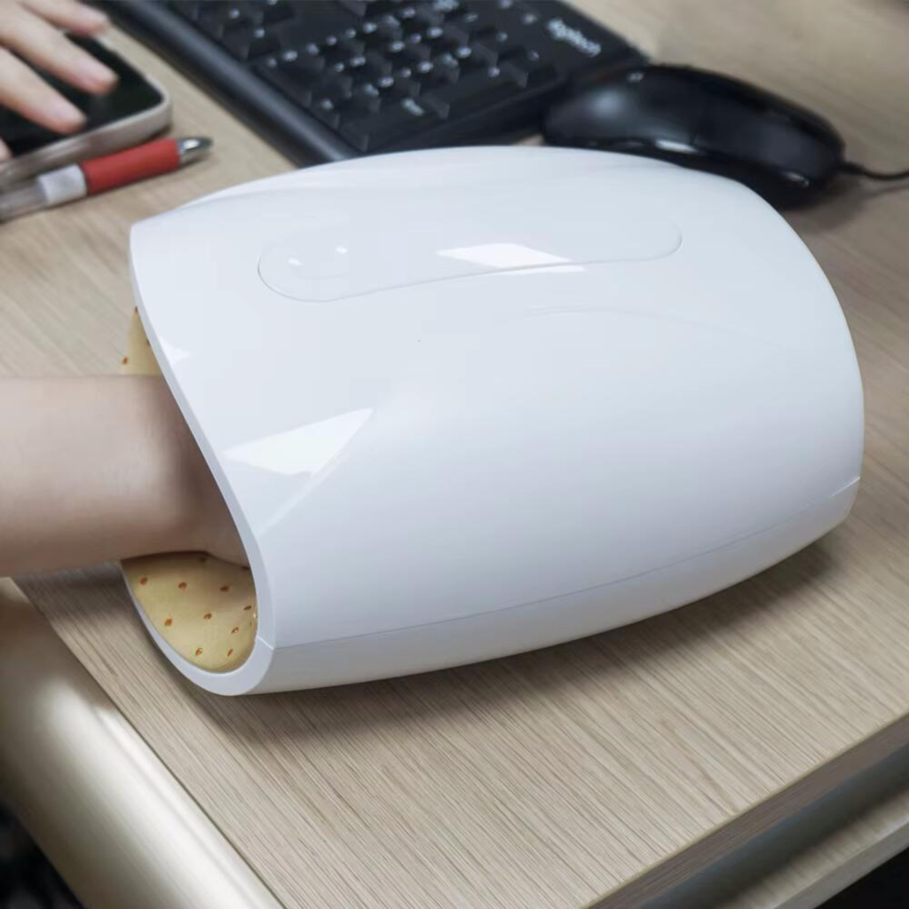 - Légnyomásos masszázs: A beépített légpárnák felfújódva gyengéden masszírozzák a kézfejet és az ujjakat, serkentve a vérkeringést és enyhítve a feszültséget.