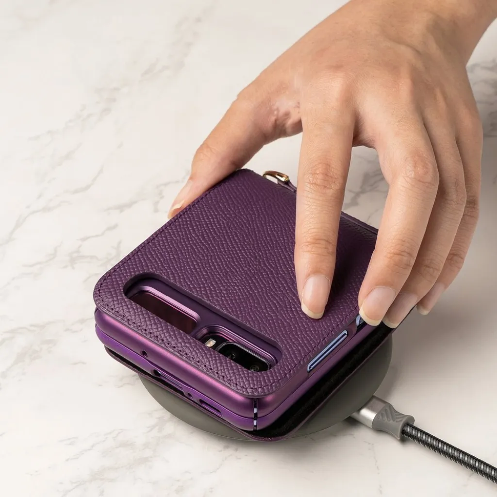 Samsung Galaxy Z Flip Ringke Folio Signature valódi bőr tok vállpánttal fekete (FOSG0001)