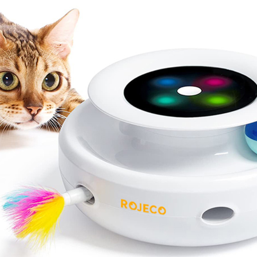 Ha a Rojeco játékot választod, biztos lehetsz benne, hogy macskád mindig korlátlan szórakozási forráshoz jut. A készülék akár öt üzemmódot is kínál. Gyors módban a toll gyorsan mozog, és zöld fény aktiválódik. Közepes sebesség mód kék fényt kínál, és a toll közepes sebességgel mozog. Az egyik másik mód, az Okos Mód 1, különféle színű fényeket biztosít, és a toll mozgásának sebessége közepes és gyors közötti. Az Okos Mód 2-ben a fény kikapcsol, és a toll sebessége teljes mértékben változik, ahogyan az Okos Mód 1-ben. Az utolsó mód a Tollcsere, amelyben a piros fény villog. Ezt a módot használva szabadon cserélheted a tollat.
