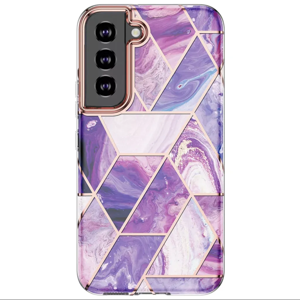 Samsung Galaxy S22 márvány mintás 360 fokos védelmet biztosító TPU tok, lila Alphajack