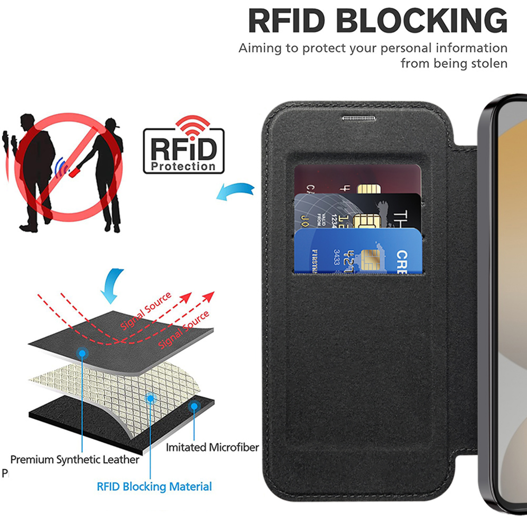 - A fekete színű, prémium szintetikus bőr külső elegáns és professzionális megjelenést kölcsönöz Samsung Galaxy S25 FE készülékének.