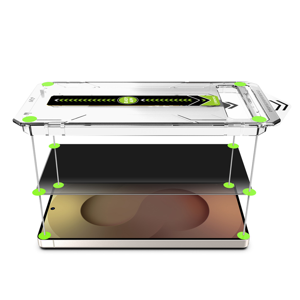- Forradalmi, pormentes felhelyezés az "Easy App" applikátorral: Az innovatív Dust-Removal Easy App applikátor keretnek köszönhetően az üvegfólia felhelyezése sosem volt még ilyen egyszerű, pontos és pormentes! Ahogy a mellékelt képek is mutatják, az automata poreltávolító mechanizmusnak hála, a speciális keret automatikusan megtisztítja a kijelzőt a portól a felhelyezés során. Csak helyezze fel az applikátort, csúsztassa el a jelölt irányba, és élvezze a tökéletes, buborék- és pormentes végeredményt minimális erőfeszítéssel.