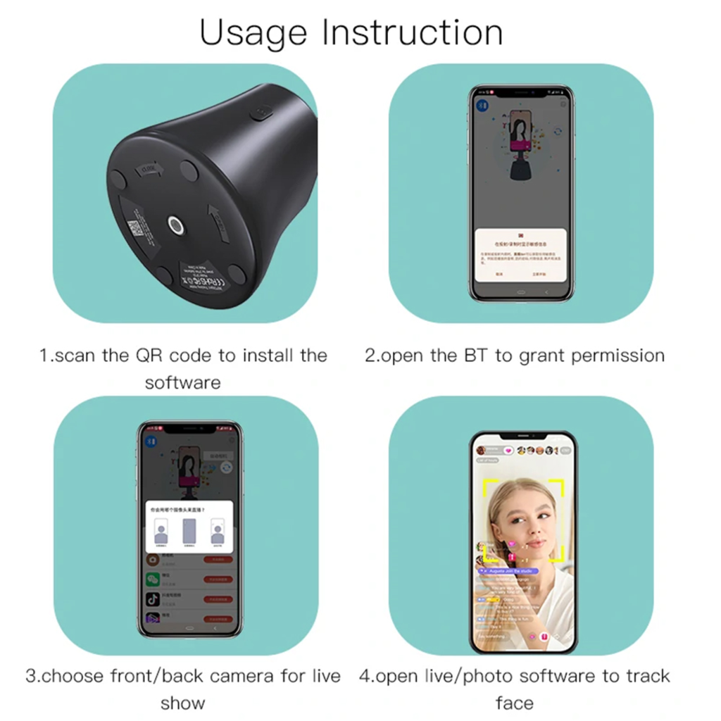 Selfie Stick Yesido SF10 - Stabil, Intelligens Arcfelismerés, 360°-os Forgatás - Fekete