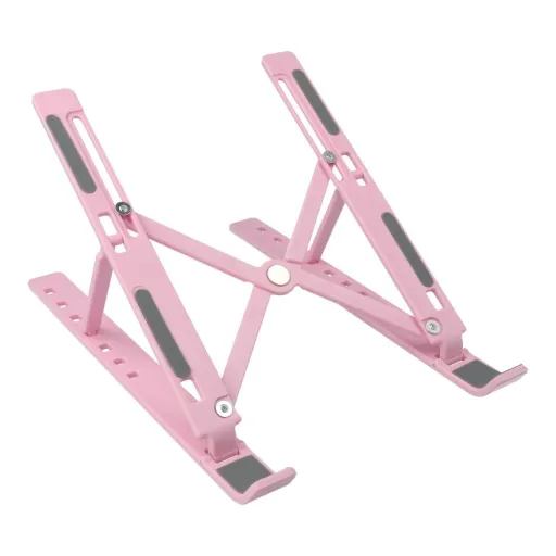 Laptop vagy tablet tartó. Megkönnyíti az eszköz használatát. Kis méretének köszönhetően nem foglal sok helyet. Tartós alkatrészekből készült, ellenáll a sérüléseknek és hosszú távú használatot garantál. Az összecsukható kialakítás lehetővé teszi a termék könnyű tárolását, amikor nincs használatban. A dőlésszög állítása lehetővé teszi az eszköz egyedi igényekhez való igazítását a tartóban. Az állítható kar távköz szélesebb eszközök, például tabletek és laptopok, valamint okostelefonok elhelyezését is lehetővé teszi. A csúszásgátló betétek megakadályozzák az eszköz mozgását és védik a karcoktól. Specifikáció: Méret: 17 23.3 14.5 cm