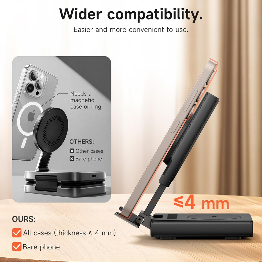 - Tokbarát töltés: Akár 4 mm vastag tokban is használható, anélkül, hogy a tokot le kellene vennie. Nem igényel mágneses tokot vagy gyűrűt, ellentétben sok más töltővel.