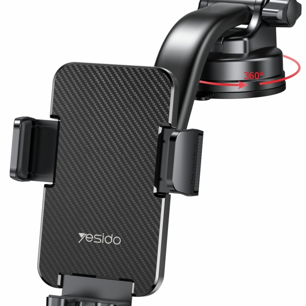 Szélvédőre és műszerfalra való Yesido C172 autós telefontartó, 360 fokban forgatható - Fekete