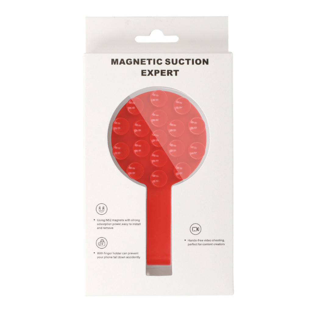 -Mágneses + Tapadási Erő – Erős mágnes, amely kompatibilis a MagSafe rendszerrel, és tapadókorongok, amelyek sima tokokra is rátapadnak.