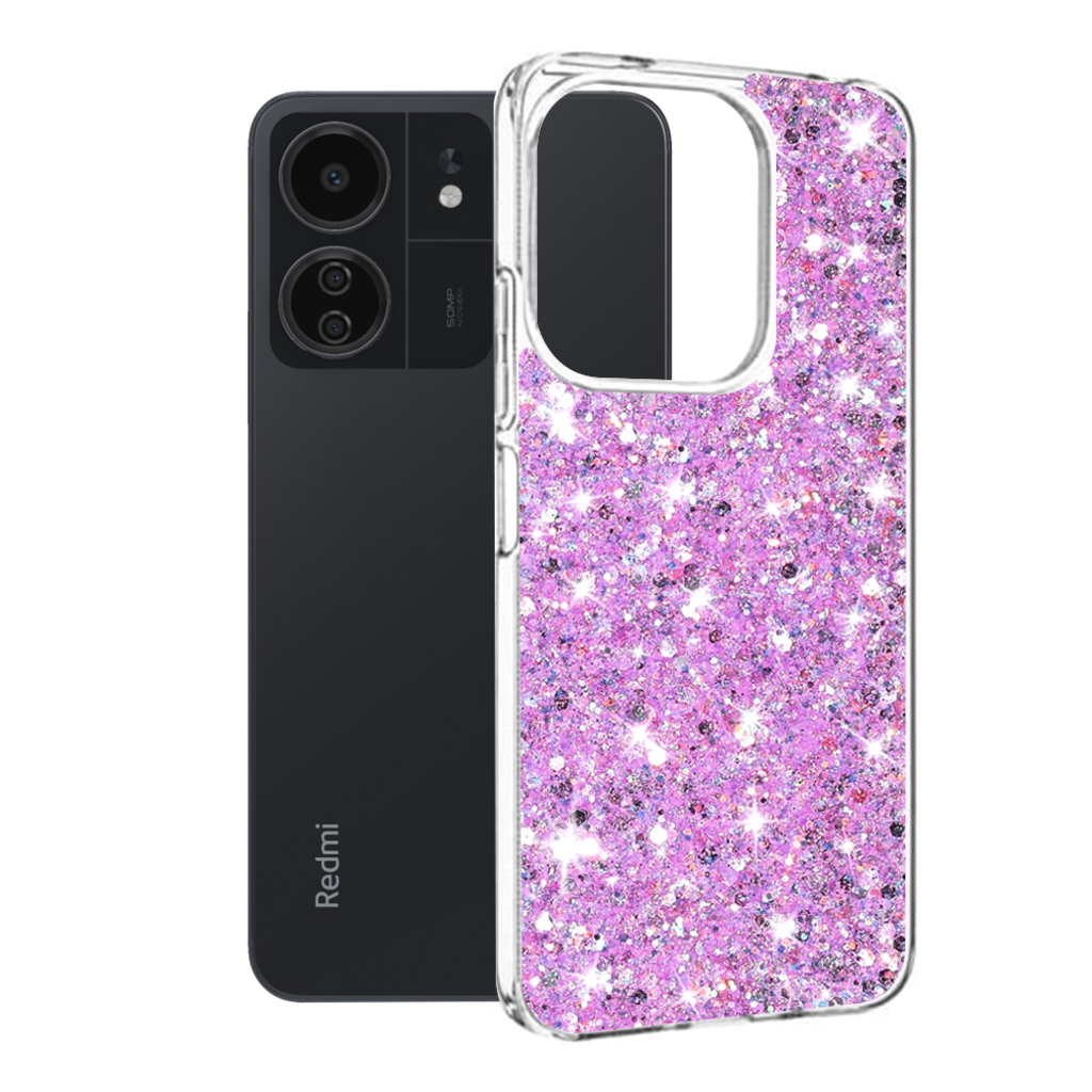 Techsuit - Csillogó csillám - Xiaomi Redmi 13C 4G / 13C 5G / Poco M6 / C65 - Magenta tok