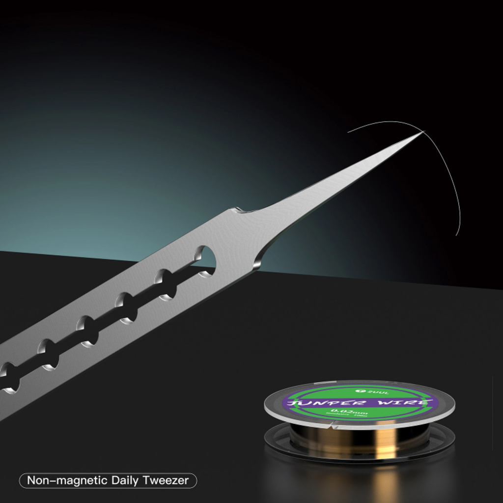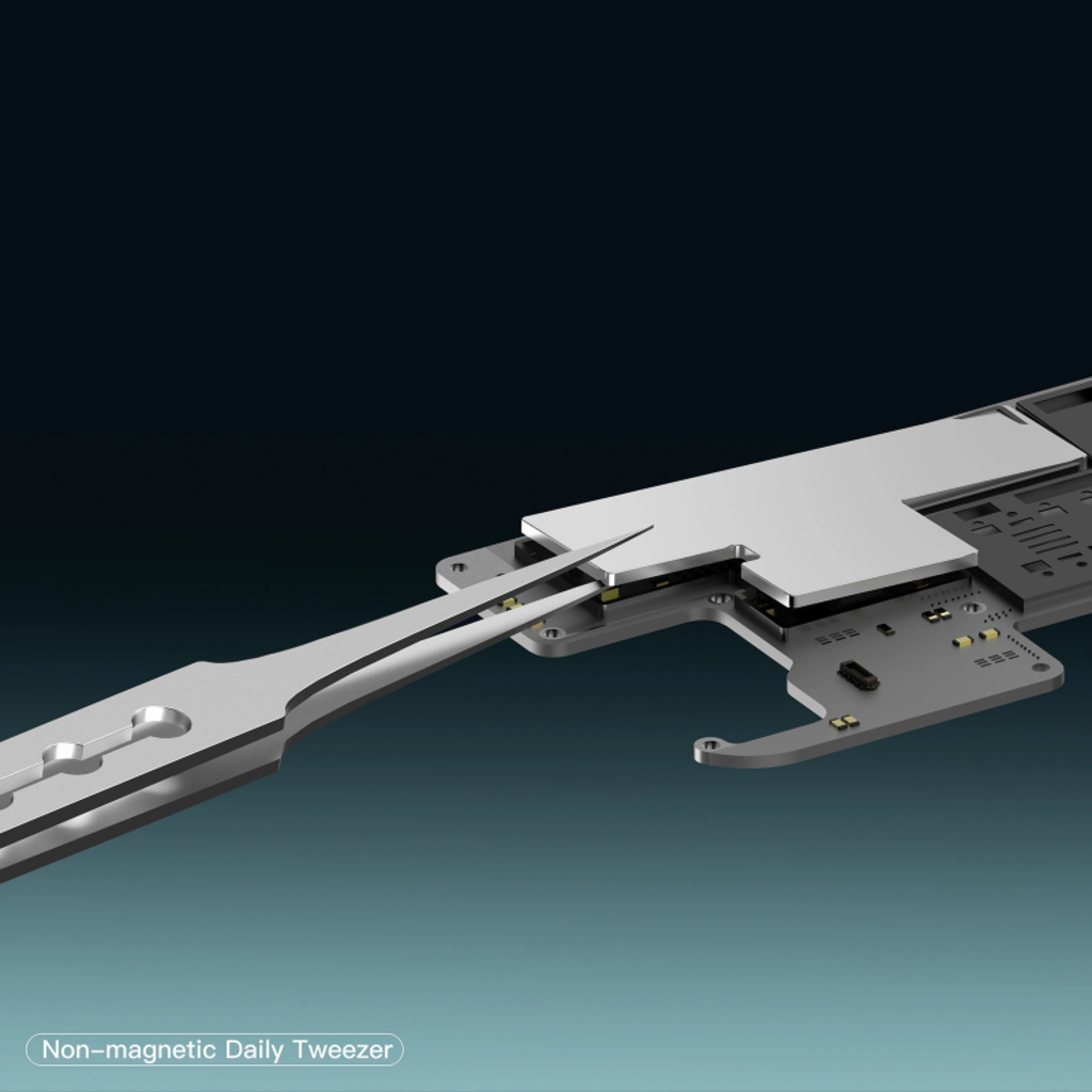 A Tweezer 2UUL TW21 precíziós csipeszek nem mágnesesek és kifejezetten az okostelefon fő áramköreinek finom javítására lettek tervezve. Meghosszabbított hosszuk miatt nagyobb kézméretekkel rendelkezők számára is ideálisak, kényelmesebb és pontosabb fogást biztosítanak napi használat során. Tökéletesek érzékeny és részletes műveletekhez, elengedhetetlen eszközök bármilyen precíziós elektronikai javításhoz.