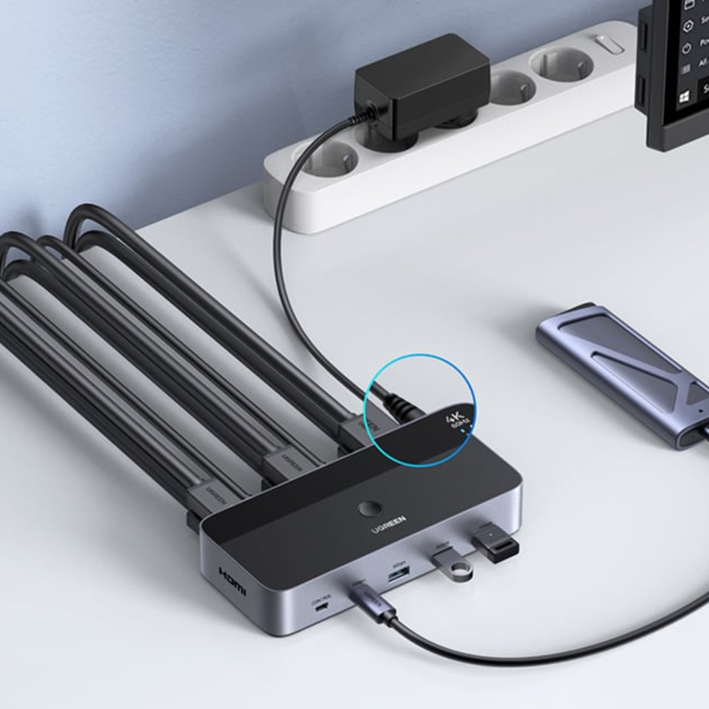 Az Ugreen AK500 egy praktikus két monitoros HDMI KVM kapcsoló, amely ideális azok számára, akik két számítógépet használnak, és egyszerre több monitort és perifériát szeretnének kezelni. Ez a HDMI KVM-kapcsoló lehetővé teszi a kényelmes váltást két jelforrás között, miközben a videó és az USB-adatok gyorsan és interferencia nélkül továbbítódnak. Az Ugreen AK500 nemcsak helyet és időt takarít meg, hanem segít hatékonyan megszervezni a munkát a többfeladatú állomásokon.