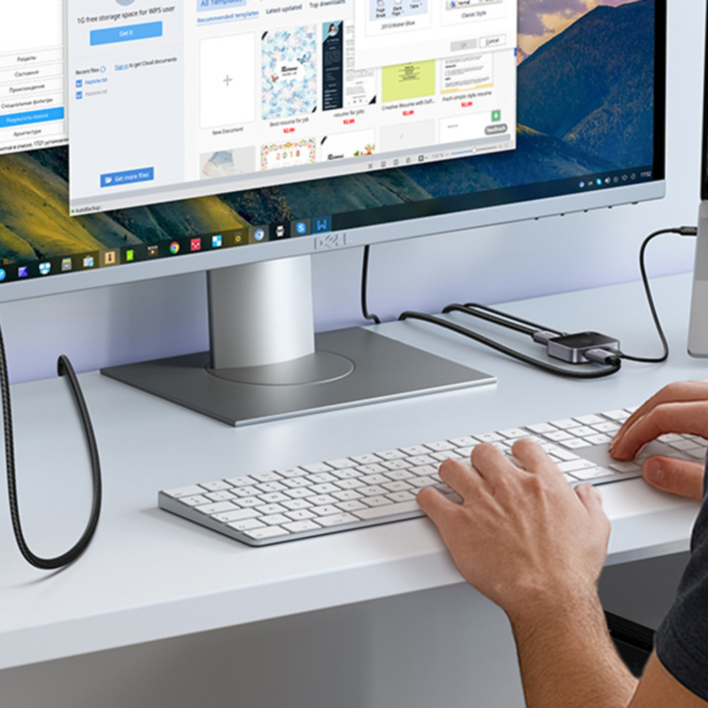 A tartós fémház hatékony hőelvezetést és fokozott biztonságot nyújt. A minimalista kialakítás és a kompakt méret miatt az adapter tökéletesen illik bármilyen íróasztalra.